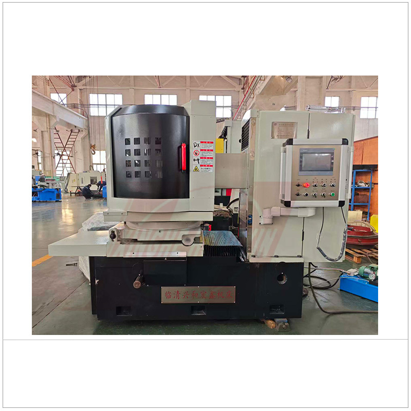 M7363 PLC型数控卧轴圆台平面磨床,总体设计结构布局型式采用磨头沿立柱导轨做垂直升降运动,工作台旋转,拖板往复移动的布局型式,结构紧凑、精度稳定、操作方便。采用砂轮周边磨削工件两平面的平面平行度与工件表面粗糙度要求较高的平面,由于工作台能绕水平轴回转倾斜(±3°)故又能磨削内外锥形表面。本产品适用于磨削环形零件、阀片、锯片、铣刀等工具制造和机械制造精密零件加工等。